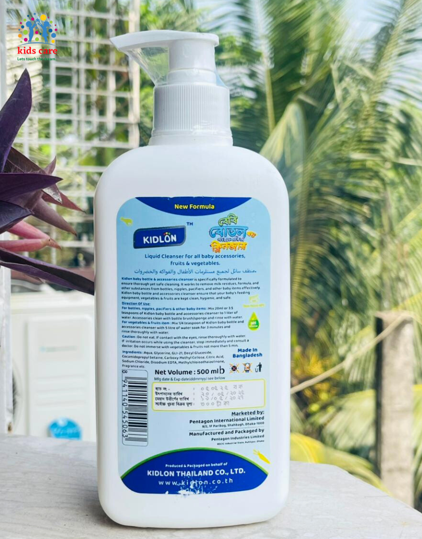 The Kidlon Cleanser is a gentle, food-grade solution that ensures the hygiene of baby bottles, accessories, fruits, and vegetables. It effectively removes milk residue, grease, and pesticides while being hypoallergenic and safe for babies. This eco-friendly formula rinses off easily without leaving residue or odor, offering a convenient and safe cleaning option for your family.